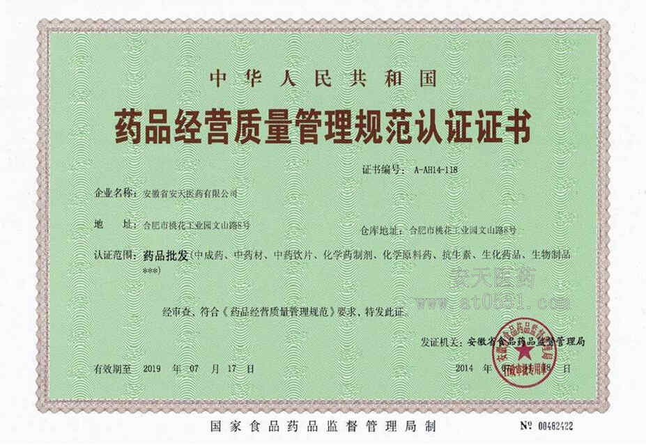 新版GSP認證證書